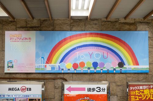 ゆりかもめ開通25周年のフラッグを撮りに行くはずが虹ヶ咲の広告に遭遇。サクッと撮ってきたので記録がてら残します。